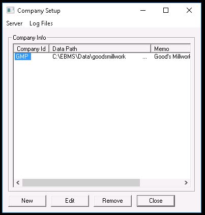 - Double-click on EBMS Company Administrator: (If it takes a bit to load, this is definitely the problem.)