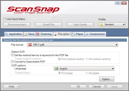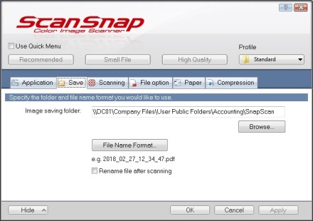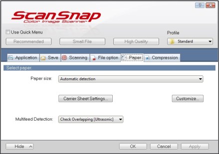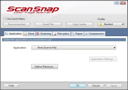 Right click on the ScanSnap icon again, select Profile Management, and select Standard.