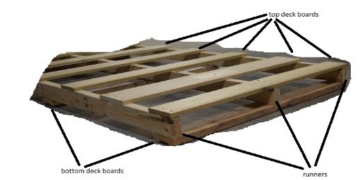 - 40” x 8’ pallet is our standard pallet. Gets 3 runners, 3 bottom deck boards, and 6 top deck boards.